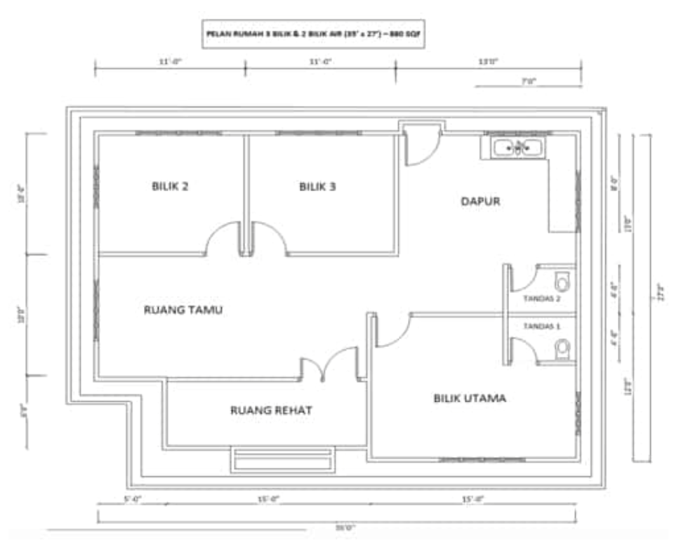 2. Kos Buat Rumah atas Tanah Sendiri untuk 3 Bilik 2 Bilik Air