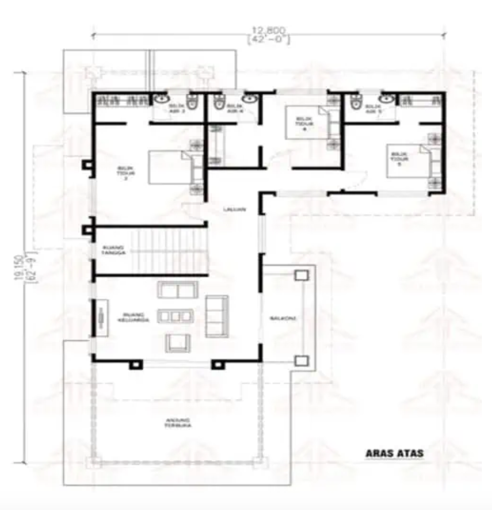 b. Luas lantai beranda dan anjung berbumbung adalah 1000 kaki persegi.