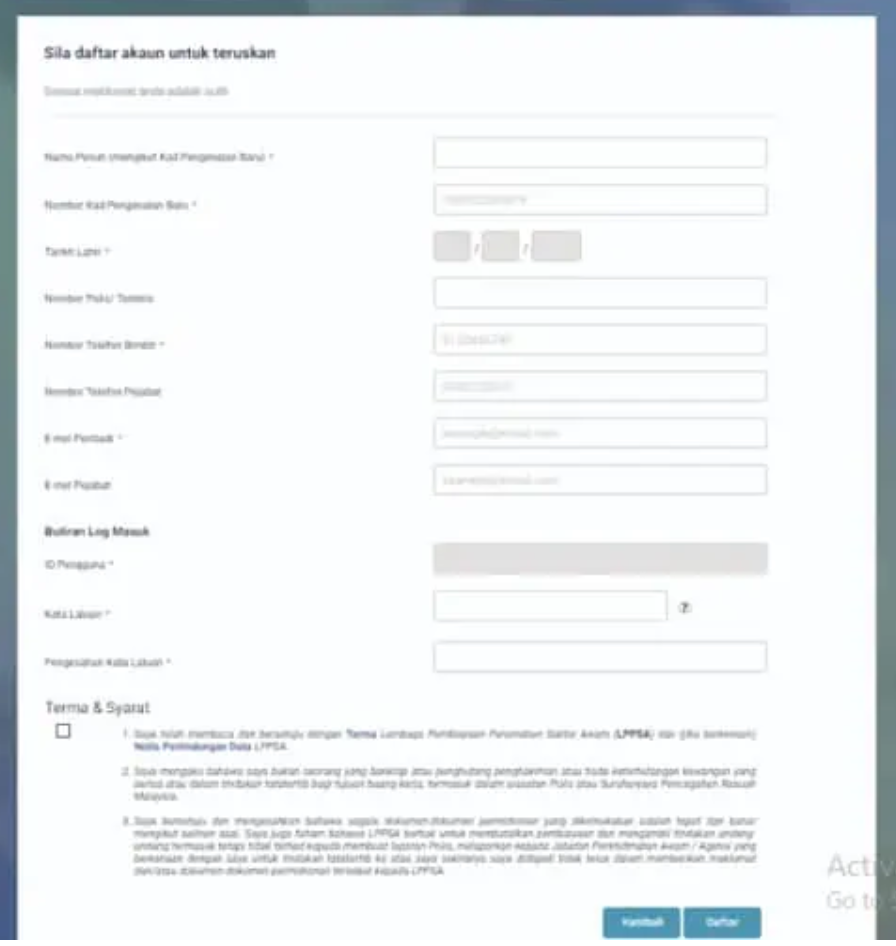 Permohonan untuk pinjaman ini boleh dilakukan dengan mendaftar terlebih dahulu secara dalam talian melalui laman web rasmi LPPSA di https://lms.lppsa.gov.my seperti yang ditunjukkan dalam Rajah di bawah ini.