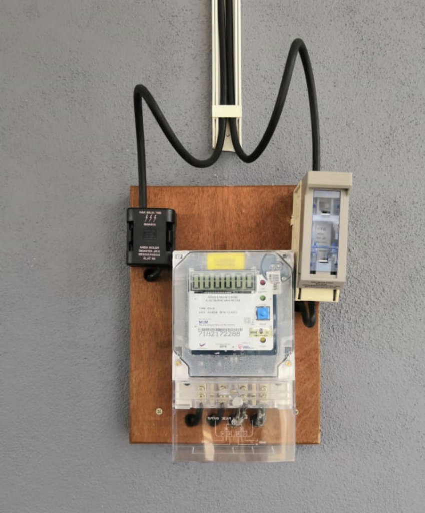 Proses pemasangan lengkap merangkumi pastikan pendawaian dari lokasi papan meter ke dalam rumah mematuhi spesifikasi yang ditetapkan.