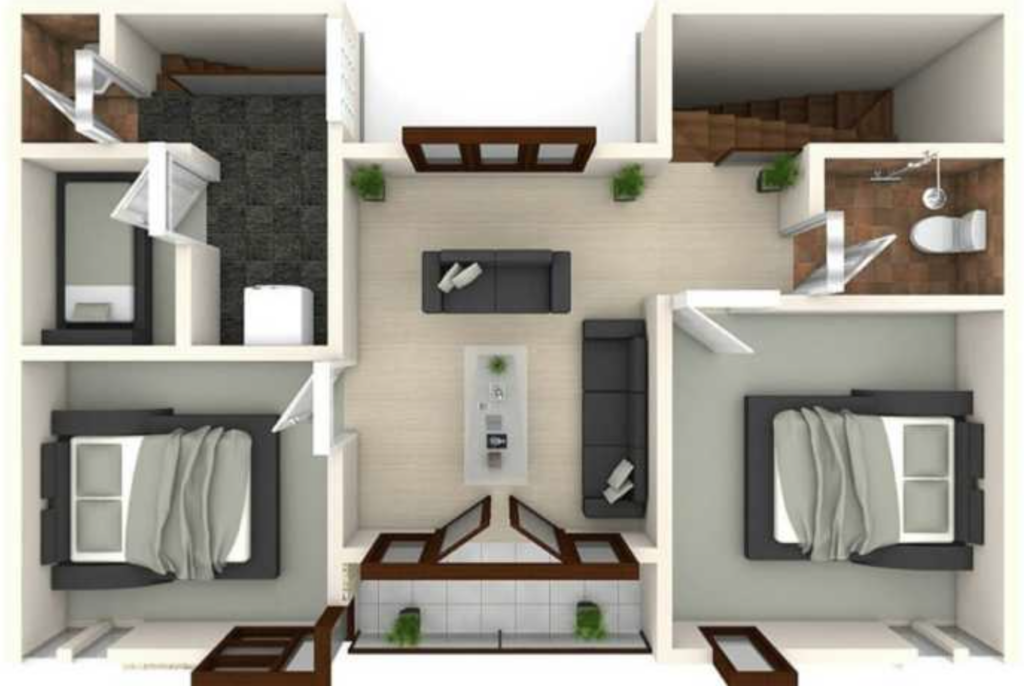 5. Reka Bentuk Rumah 2 Bilik Ringkas dengan Bilik Tidur Utama