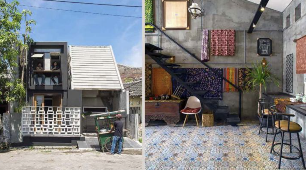 Ciri-cirinya termasuk penggunaan bahan logam yang dipadankan dengan acian simen, serta beberapa bahagian rumah yang dibiarkan belum selesai untuk mengekalkan kesan asli industri.